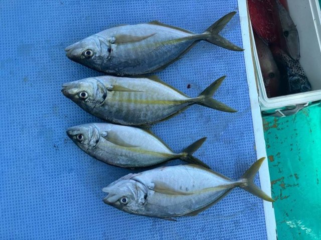 最大1.00kg 0~3匹 シマアジ 0~4匹 イサキ メイチダイ ソーダガツオ オオモンハタ シマアジは、朝から、当たり活発もバラシ多数。 チビジマちゃんが、上がりました。