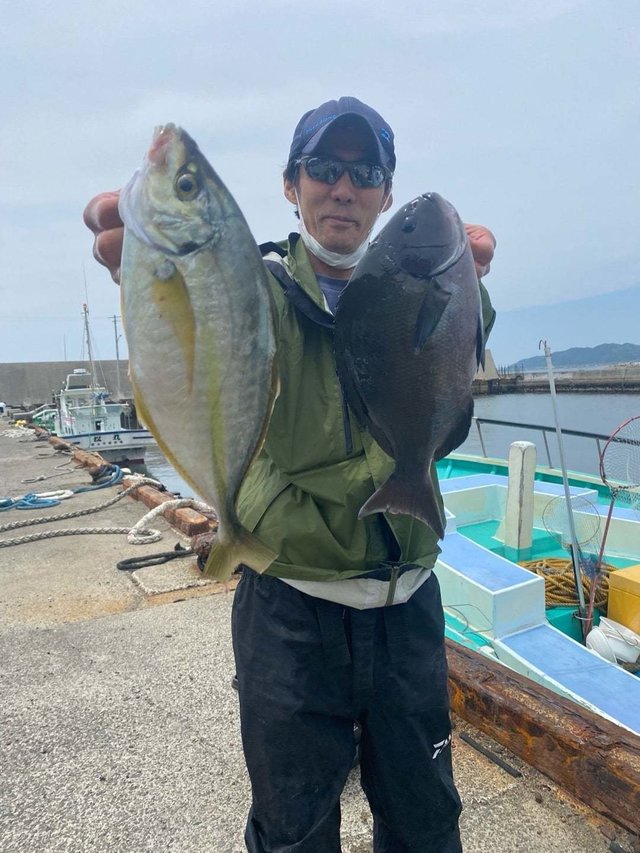 2.60~2.60kg 0~1匹 シマアジ 1.50~2.95kg 0~4匹 スマガツオ 1.00~2.00kg 0~4匹 ヒラマサ 5.00~5.00kg 0~1匹 マダイ イサキ ヒラマサ メイチダイ ウマ フエフキ アカハタ 今日は一日、海上も凪模様でぽかぽか陽気に恵まれ、シマアジ狙いに出船してまいり、今日も潮の流れは良く、シマちゃんのご機嫌も好調となり、ときおり、船上あっちでこっちでたも網すくいも忙しい場面もあり、今日もすっぽ抜けのバレが非常に多く大苦戦をしいられてしまい、今日は4回あたりがあって、全てバレに泣かされてしまったお客様も次回へのリベンジに闘志を燃やしてのお帰りとなりましたが、今日もこちらも大人気な美味しいスマちゃんも多く混じりながら、良型シマちゃんも多く捕獲することができましたよ〜!!!と、明日も張り切って出船したいところですが、明日は残念ながら予報悪く出船を見合わせます。明後日(土)は海上も凪模様で張り切って出船いたします!!! 連日、朝晩、冷え込んできておりますので、体調管理にお気をつけてお過ごし下さいませ!!! ※お知らせ※ キンメちゃんファンの皆さん、お待たせさました〜!!!と、10月3日(金)より、半夜キンメ船も開始いたしておりますので、ご予約のお電話、じゃん、じゃん、お待ちしておりま〜す!!!尚、仕掛け等、詳しいことはお電話にてお気軽にお問い合わせ下さいませ!!!(16時集合10名様限定料金13500円オモリ200号電動貸し竿あり、数に限りあり4名様より出船確定)