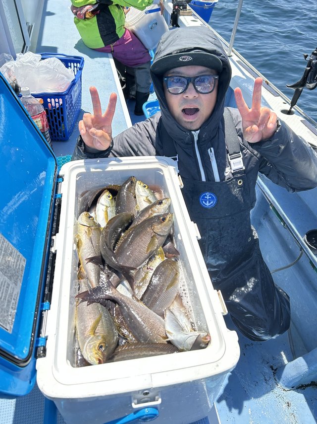 0.80~1.00kg 合計4匹 タイ 0.85kg クロダイ 1.05~1.40kg 合計12匹 イトヨリ 最大1.20kg 合計2匹 サバ 合計1匹 4名様。
