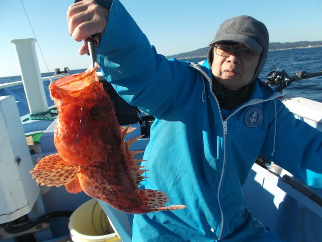 今日はアマダイ五目出船です。 気象予報は、西の風強く~でした。 千倉は西風は風裏、問題無いでしょう~と集合です。 大島はさすがに13m吹いているが、洲崎は6mと弱い。 少人数ですが、頑張って出船となる。 さすがにポイントは波が少々ございます。 二枚潮で非常に釣りずらい。 あれ~昨日はオニカサゴが顔を見せず! 今日はオニカサゴが適度に釣れている。 アマダイも皆さん型は見るも、大型は出ませんでした。 後半には潮目が入りアウト~!