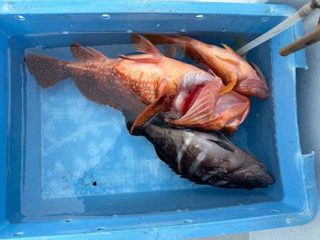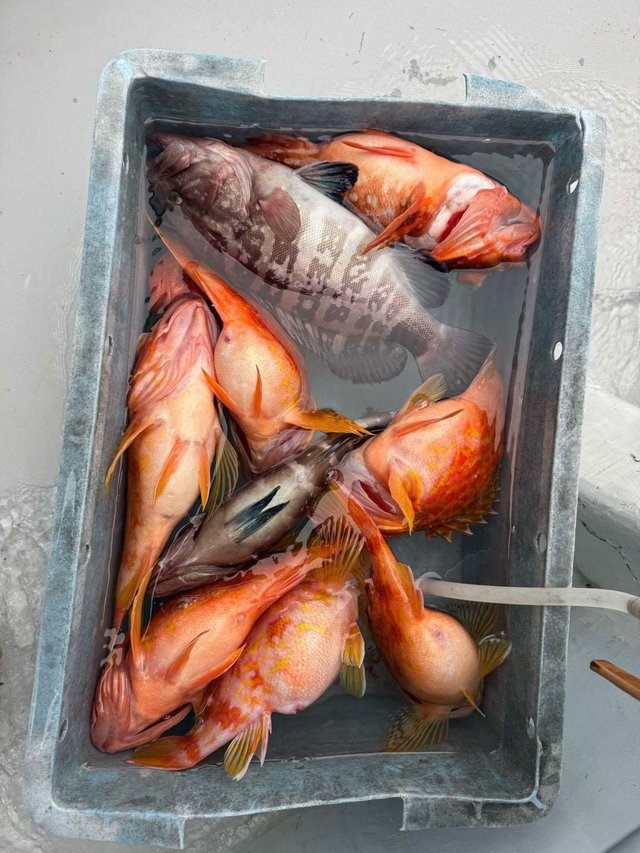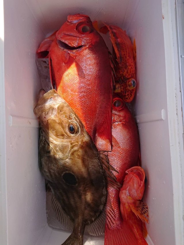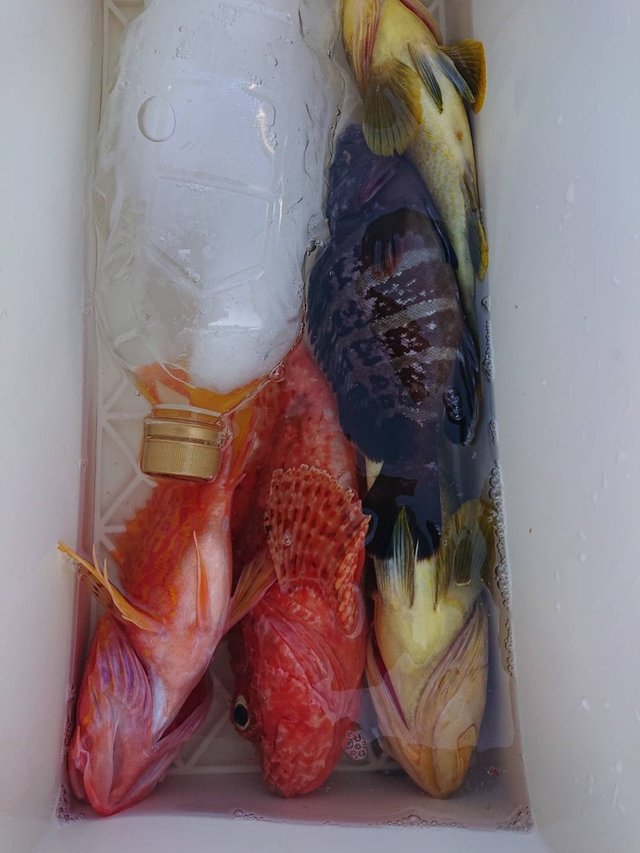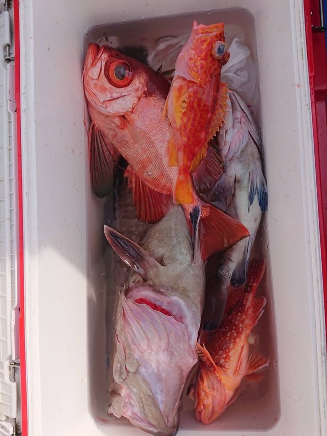 0.70~1.70kg 0~2匹 キントキ 27~40cm 0~3匹 カサゴ AM5:00出船。 キントキ反応あるも、うねり少々底荒れで 食い渋りの、苦戦・・・。 マハタ、 他にカサゴ多数混じった。 本日の半夜船は台風に備え奥へ避難で 中止となりました。