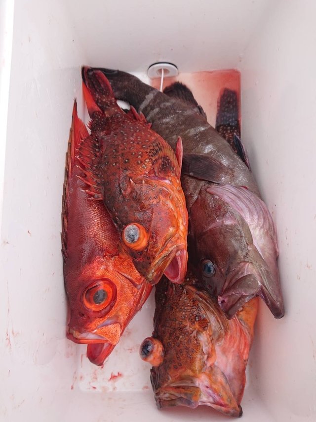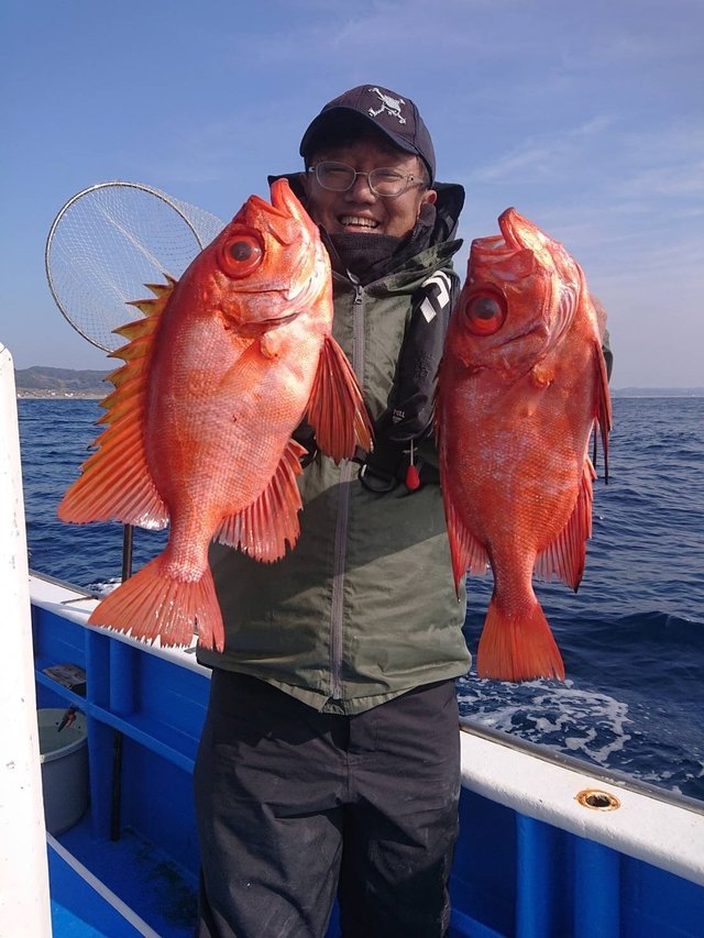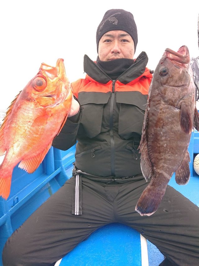 カサゴ オキメバル AM5:30出船。 朝から、冷たい雨模様・・・。 海上も、寒いのと北東の強風で船酔いも。 キントキは型見た程度でした。 かさご、沖メバルで、お土産になったお客様もおりました。 厳しい一日でしたね。お疲れ様でした。 今日の半夜船は、またまた中止となりました。