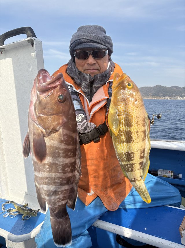 (マハタ)0.60~1.60kg 0~2匹 キントキ 26~38cm 0~3匹 ハタ カサゴ AM5:20出船。 連日、反応バッチリ出ているのに、キントキは、 何故かご機嫌よくなく、食い渋り・・・。 他にカサゴも多数。 ハタが船中10本あがりました。 今夜も、これから風雨が強くなる予報で、 出船は中止となりました。