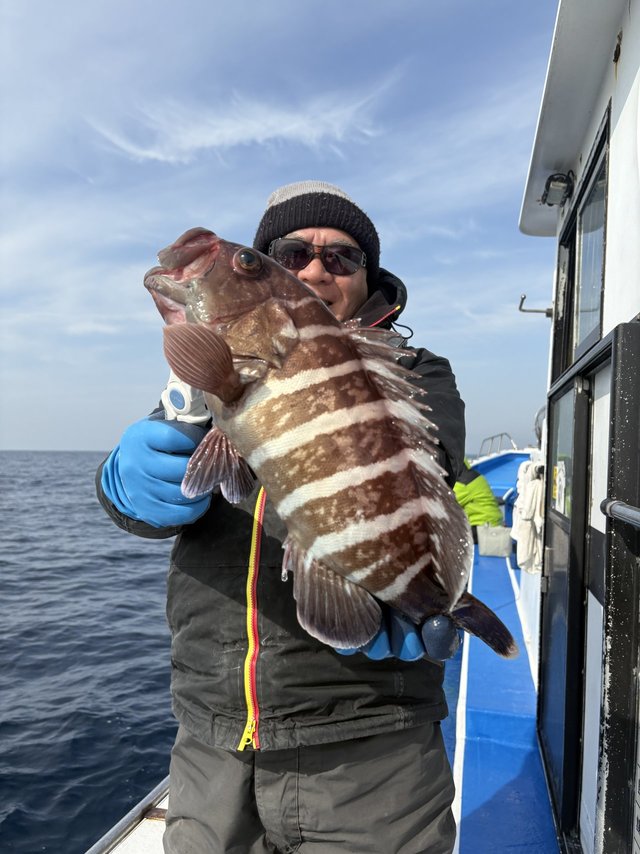 1.10~1.90kg 0~2匹 AM5:30出船。 2名様の乗合。 泳がせ用の餌釣りから開始~。 良型イサキも混じった。 泳がせはバラシもありました。 今夜は久々に夜も凪て黒ムツ、キンメへ出船いたします。