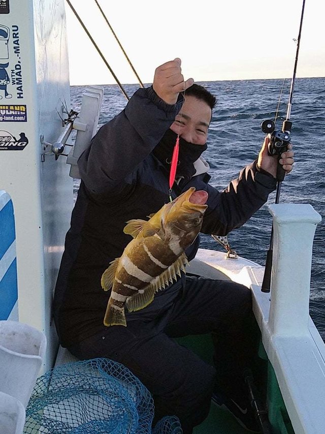 1.00kg 0~1匹 マダイ 27~32cm 0~2匹 アカハタ 0.50~1.00kg 0~2匹 シイラ 1.20kg 0~1匹 カサゴ サバ イサキ 【釣行時間】6:00〜11:30【潮汐】中潮(月齢26)干潮8:21【気温】21〜27℃【水温】25.5〜25.8℃【水色】澄み/暗【風】西弱→無し→南東弱→南やや強→南西やや強→無し→南やや強→南西やや強【波】南東中→南東大→南東中【潮流】逆潮0.5〜0.8kt→無し→真潮0.1〜0.7kt【乗船人数】5名。 本日は【タイラバ/ジギング/ひとつテンヤ五目釣り】。マダイの活性が良さそうなので、本日もマダイ狙いでGO。朝マヅメ、マハタHIT〜。続けてマダイも。どうもシイラが回ってるみたい…。浅場に入って、アカハタも良型です。なかなかの大漁で楽しめました〜。