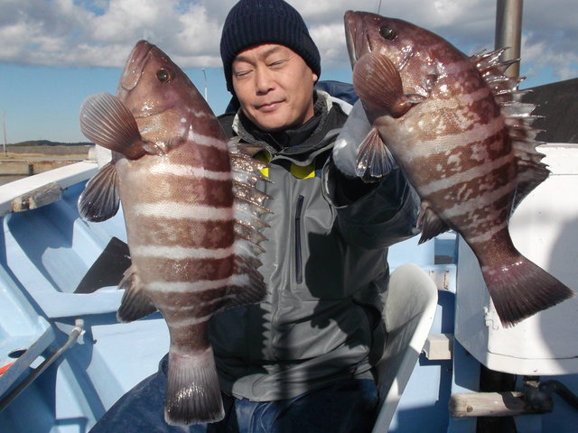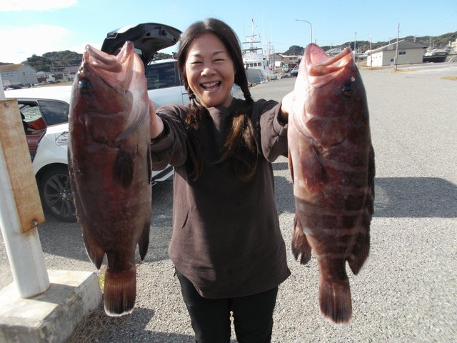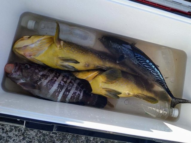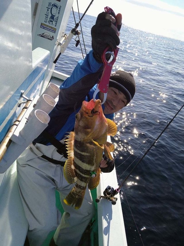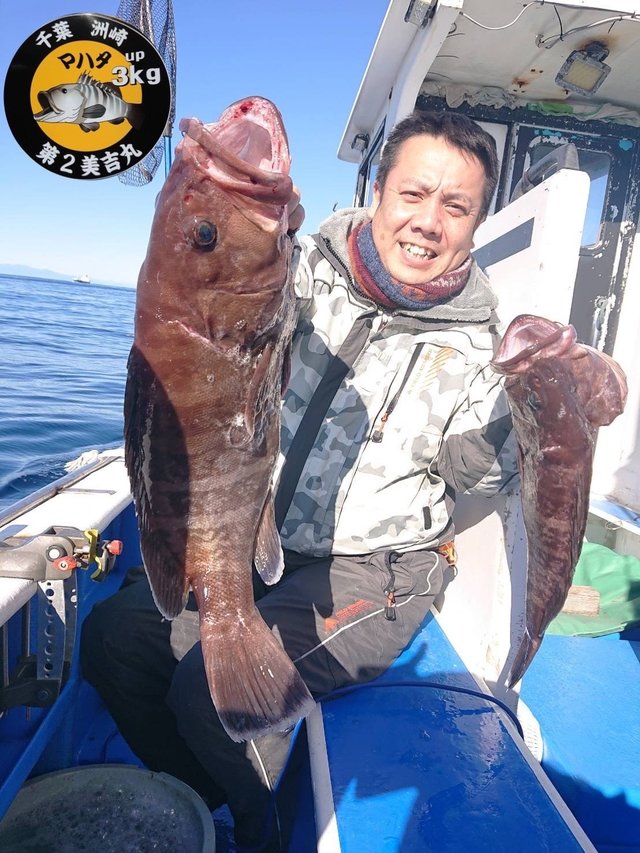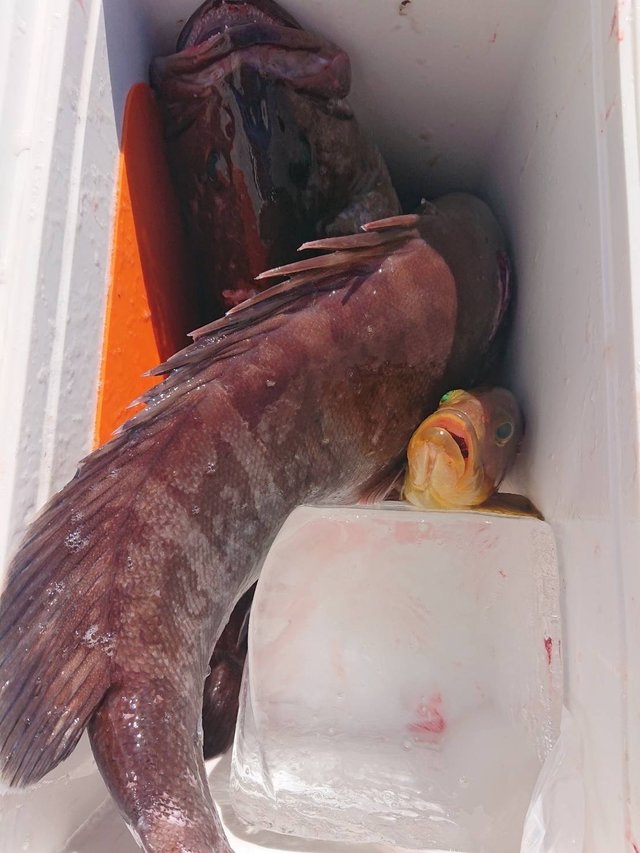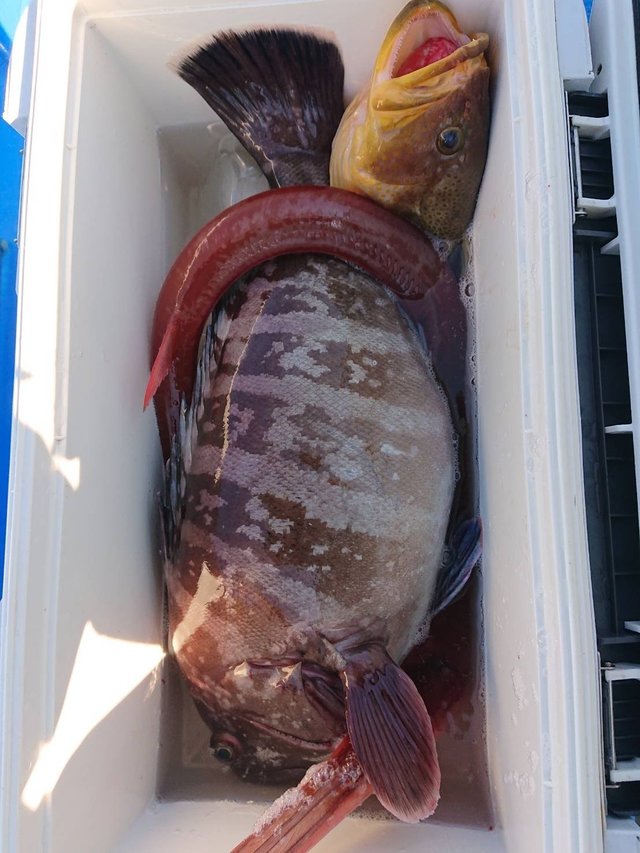 1.00~3.00kg 合計3匹 トラフグ 最大3.50kg 南西の風が強く釣りづらかった。マハタ(1,0~3,0キロ)3尾、トラフグ(3,5キロ)。