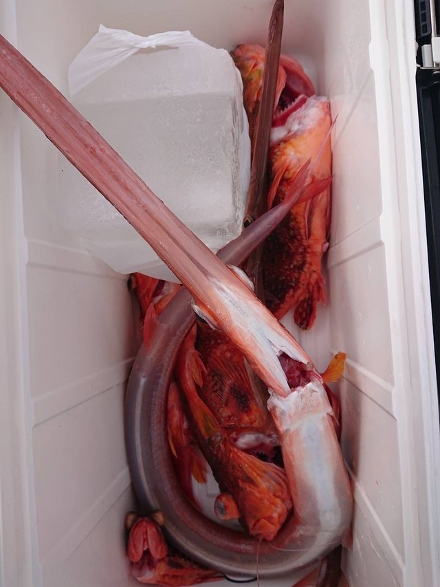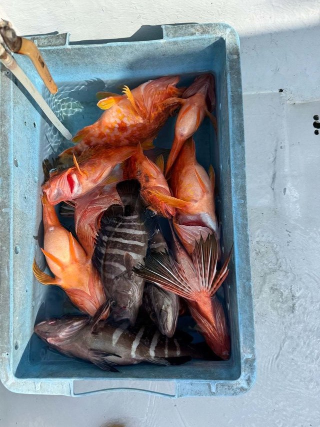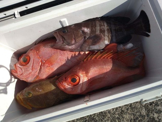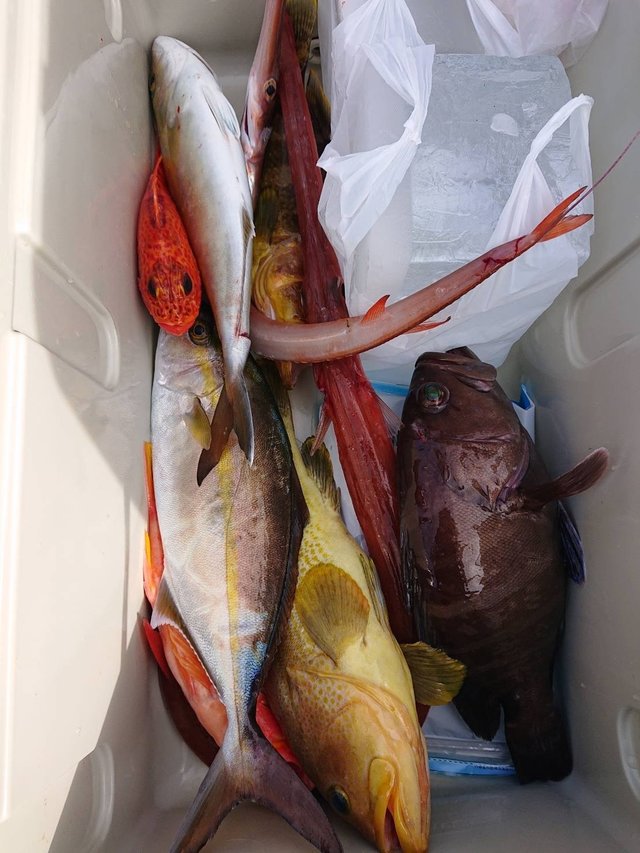 (マハタ)キントキ 26~41cm 0~16匹 カサゴ ヒメダイ AM5:00出船。 昨日迄、遅い夏休みをいただいてました。 本日のキントキ五目は、朝のうちはシーン.....。 後半、食い上向いて大、中、小混じりでした。 大ヒメダイ1.6キロも上がり、 他にハタ、カサゴ、も混じった。 明日もキントキ五目へ出船で、受付終了いたしました。