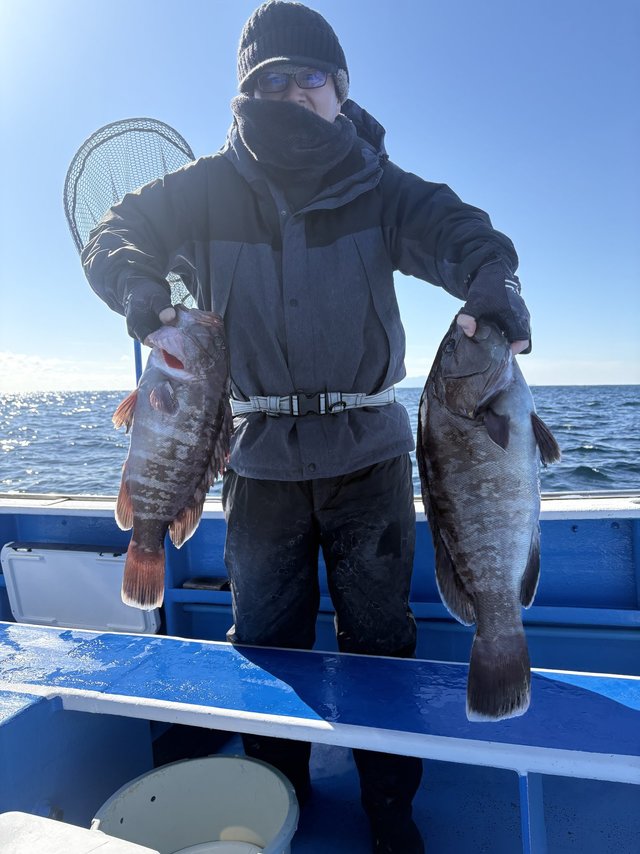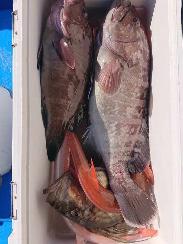 5.70kg キントキ 33~42cm 2~14匹 オキメバル カサゴ ヒメダイ AM5:00出船。 終始ポツポツ何かしらが当たり、 あがるキントキは40cm前後が主体です。 他に5.7キロまはたと、沖メバル、カサゴたすうと、ヒメダイも 混じり、皆様お土産十分となりました。 明日もキントキ五目狙いで出船で、 あと2名様空きあります。