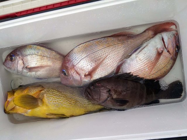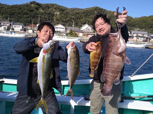 0.80~2.40kg 0~1匹 キントキ 28~40cm 1~5匹 カサゴ AM5:00出船。 朝一、反応濃くこれは、今日はルンルン。 ・・・が、潮動かないせいか、口使わず。 他にカサゴ多数とマハタも良型あがってます。 明日は台風の影響が出ますので出船は 中止となりました。