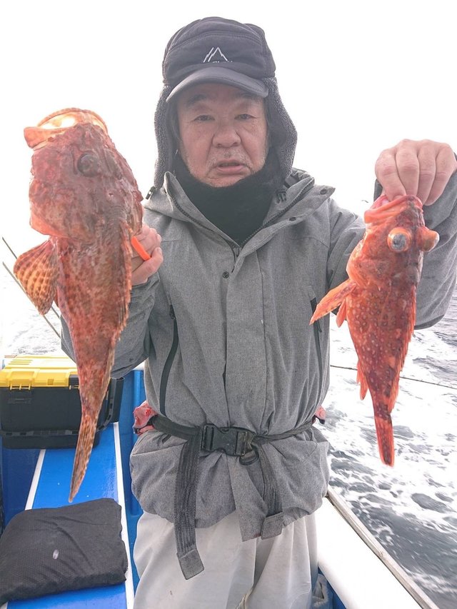 0.80~2.30kg 0~1匹 オニカサゴ キントキ AM5:00出船で乙浜前にて餌のアジ確保。 のちの、泳がせはマハタのばらしも多く、 他に鬼かさご多数と、キントキも混じった。 朝のアジは初で心配されましたが、 良く釣れました。 明日は臨時休業ですスミマセン。