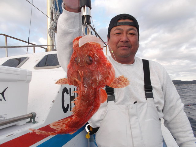 0.40~1.55kg 2~7匹 AM5:40出船。 朝、晩は冷え込みお鍋の季節ですね。 鬼かさごは7名様で全員キロオーバーゲット。 2回目のお客様もニコニコ。 トップ7尾が2名、6尾が2名と全員が お土産になりました。 本日、明日の半夜船は予報悪く、 出船は中止となりました。 明日の半夜船、ご予約のお客様お電話しましたが、 連絡取れない方がおります。 確認の連絡下さい。