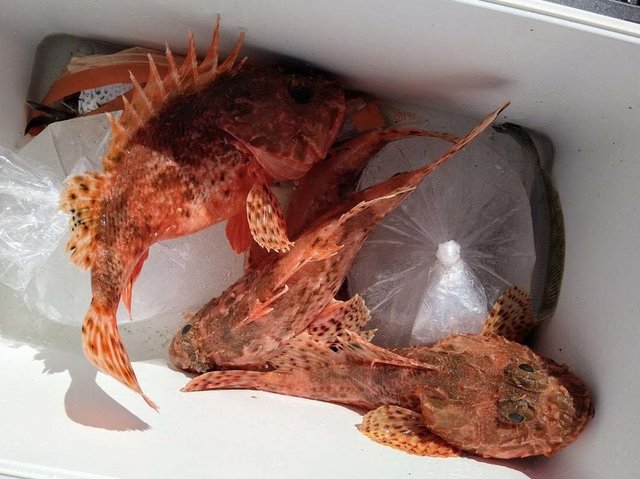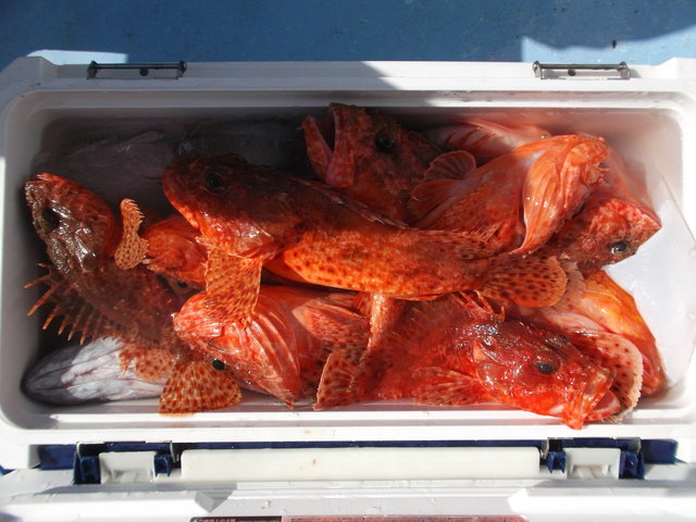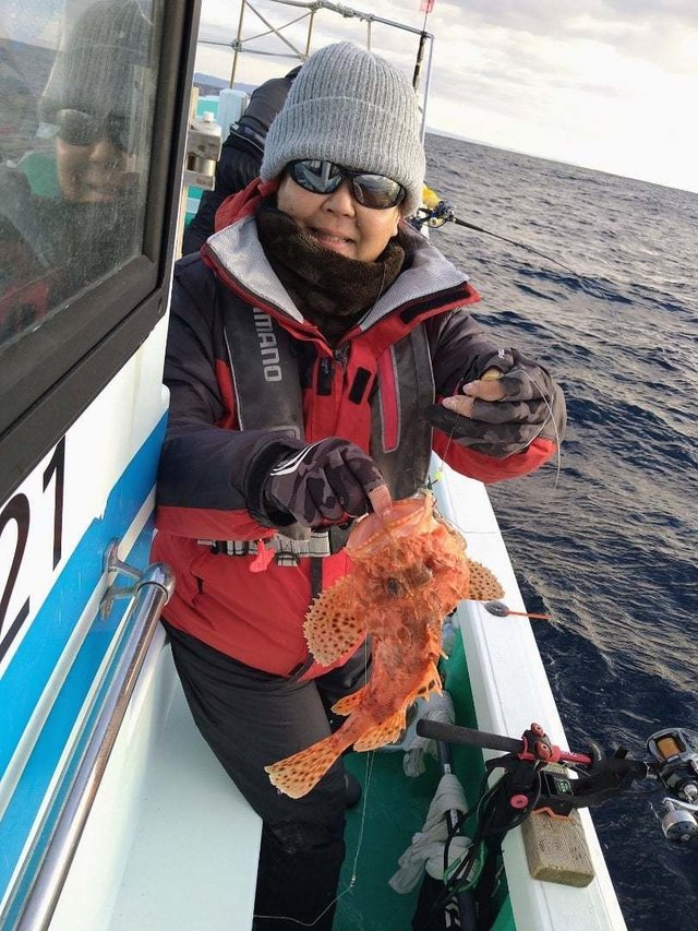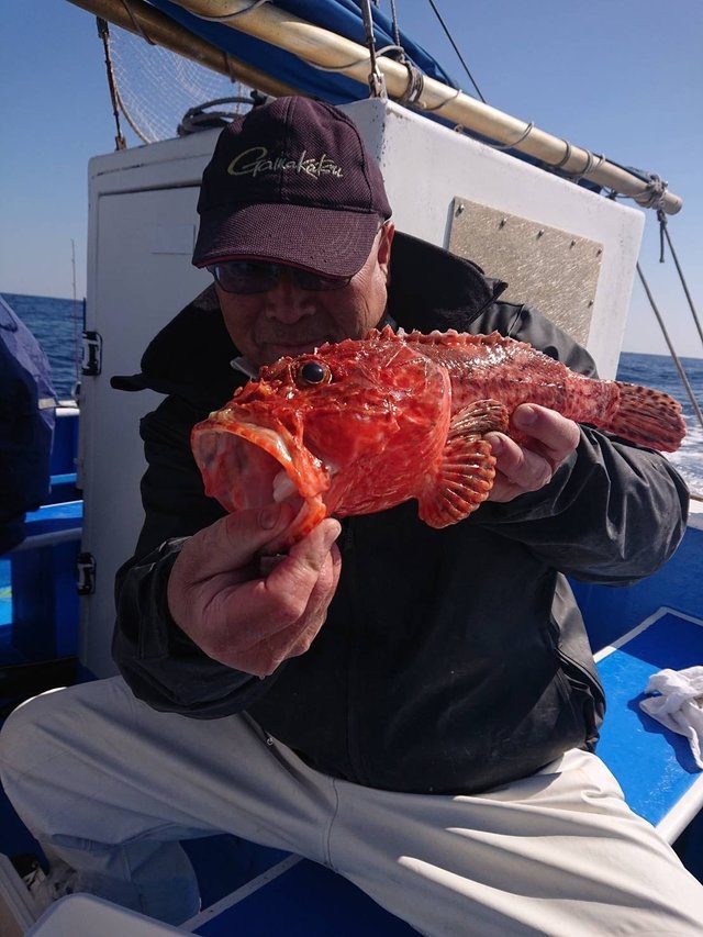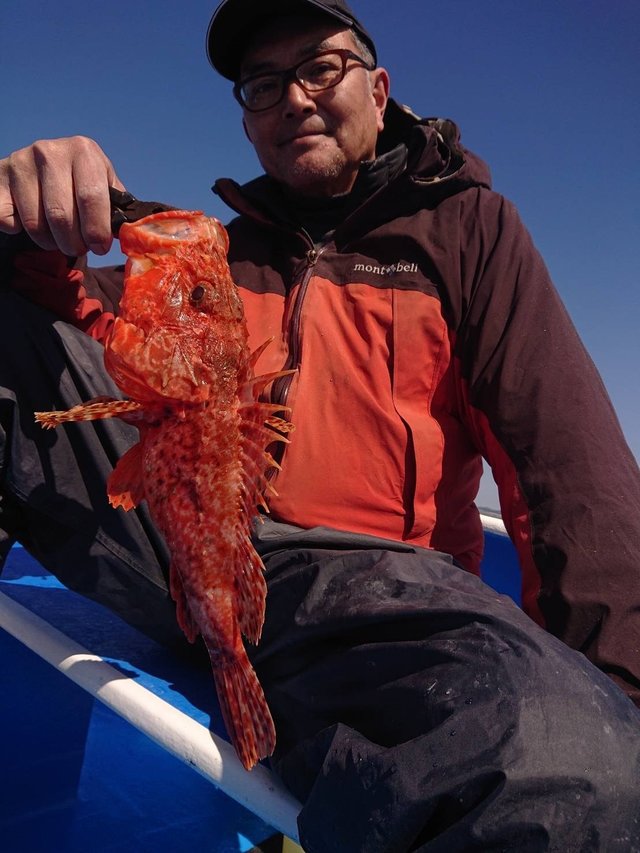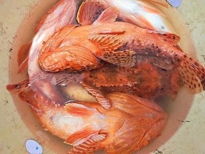 2~4匹 オキカサゴ AM5:40出船。 終始北東の風強く釣り辛かった。 鬼かさご2~4尾と他に沖かさごも多数混じった。 風強く、写真は撮れませんでした。 すみません・・・。