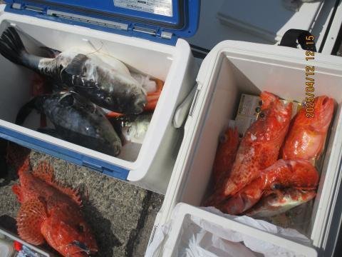 0.40~1.20kg 1~6匹 オキカサゴ AM6:00出船。 鬼かさごは、終始ポツポツあたり、 0尾なく、皆さんゲット出来ました。 他に沖かさごも多数混じった。 本日の半夜船は、予報悪く残念ながら、 出船は中止となりました。