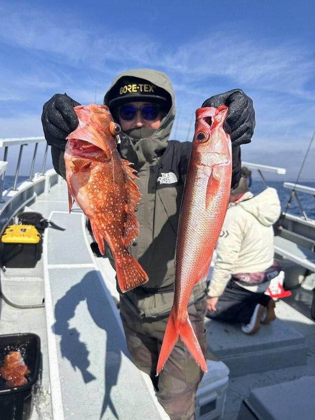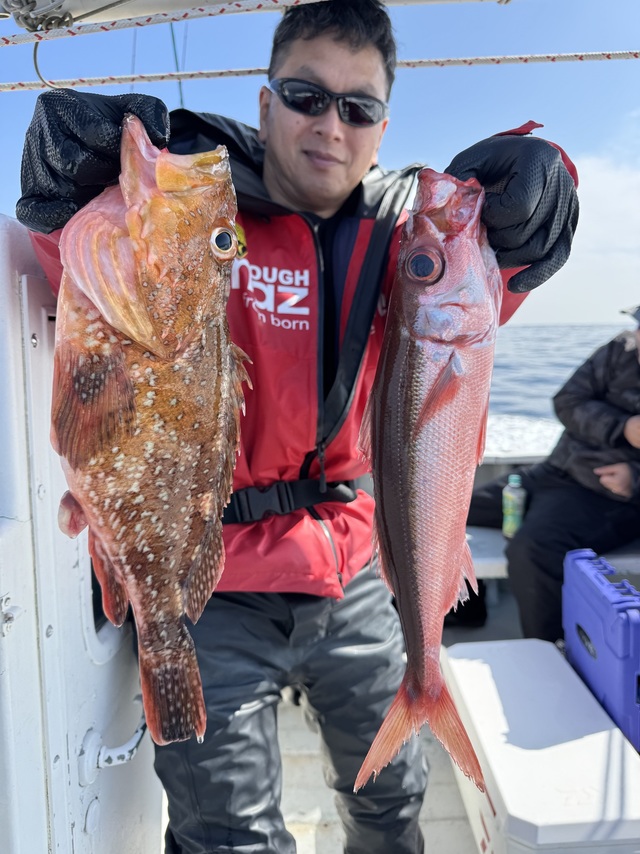 (マエソ)30cm 合計1匹 2/13午前、中深海ジギング船 移動しながら転々とクロムツはアタリ良く パタパタと上がる流しありました! 良型メヌケも浮上~~!! 明日14日(土) 受付終了 15日(日) 受付終了 16日(月) 午前ティップラン船 空席あり募集中!
