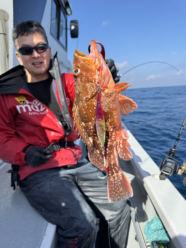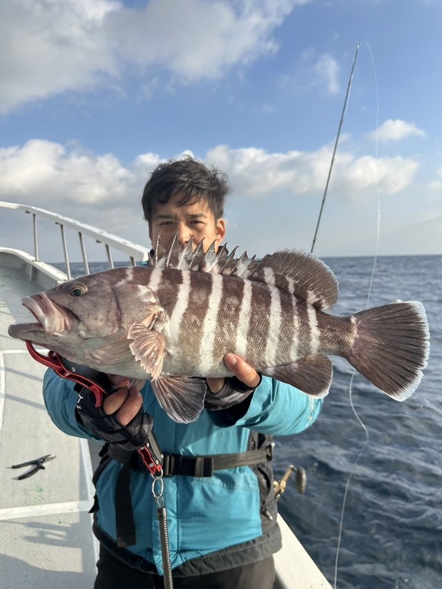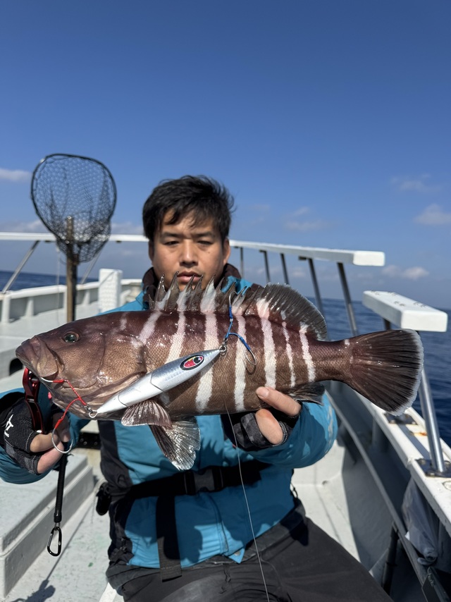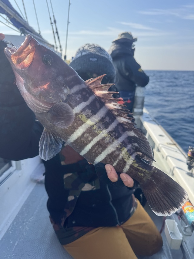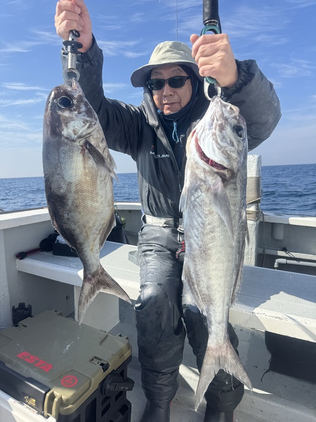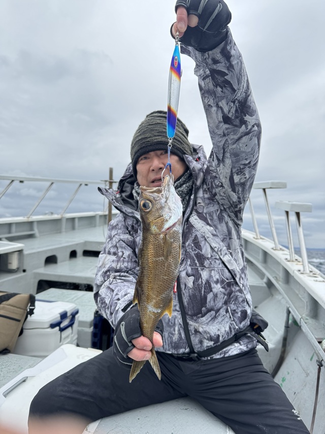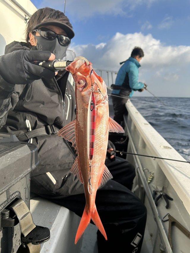 (マエソ)35cm 合計1匹 2/14午前スロージギング船 いい凪で出船できました! 潮トロッと流れてハチビキや、ムツ カンコ、キントキなどアタリ良く マハタは2ヒット1キャッチで でかい方は痛恨のブレイクでした。 後半は食い渋りましたが カンコ、ハチビキがポツリとでした! 次回もデカイの狙っていきましょう!