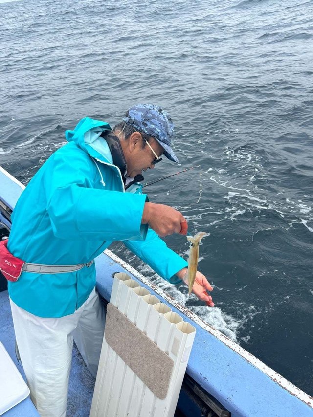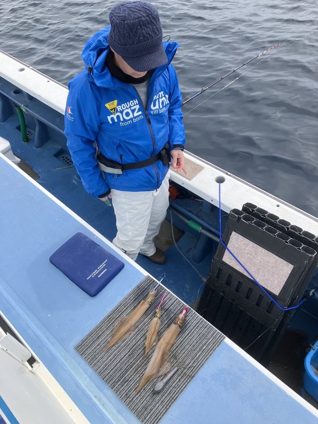 時化後なのでウネリ深く厳しかったかな、船酔いの方も出てしまいました。 乗りそうな反応有るけど乗り悪く頭で12杯。 雨とウネリで釣り難かったと思います、お疲れ様でした。