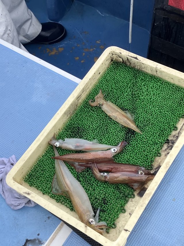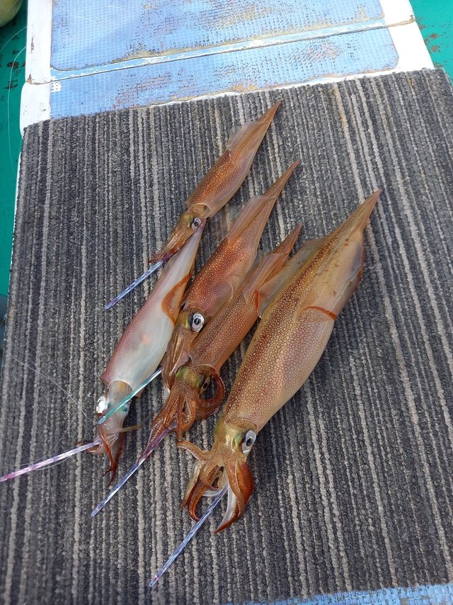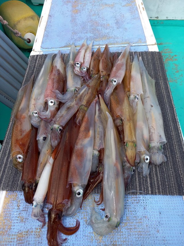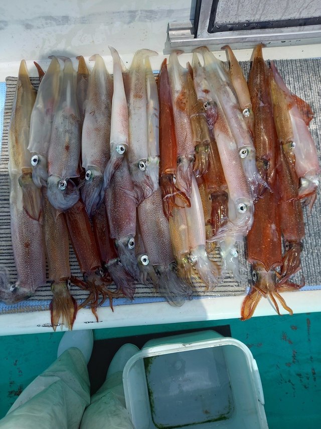 ヤリイカ好調でした。 朝から乗り良く楽しめたと思います。 後半ちょっと失速したけど手返し良ければ数取れそうな乗りでした。 サイズも中~大型メイン。 12~38杯。 9時半頃には30杯超えたそうです。 お疲れ様でした。 新しい群れでサイズも良いのでお土産になりますよ。