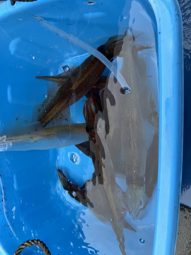 前半少し乗りそうな感じでツ抜け位行くだろうと思ったら 途中から急に乗り悪くなり2~9杯。特大まじり。 イルカが見えたので影響有るかもかもしれませんが 乗りイマイチでした、少し探し回ったのもまずかったかな? お疲れ様でした。