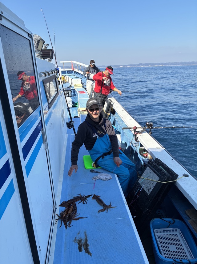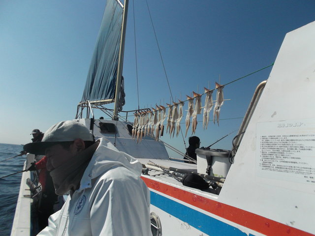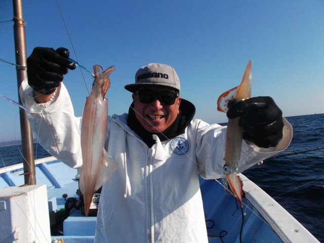 24~41cm 15~37匹 AM6:00出船。 スルメイカ主体で、ヤリイカ3割混じった。 本日皆さんブランコ仕掛けでした。 小ぶりなスルメイカ混じりで多点掛けもあり、 今後も期待ですよ。 14cm直結、18cmつのも出来れば、 用意してくださいね。 今夜の半夜キンメは南西の風予報で、 出船は中止になりました。
