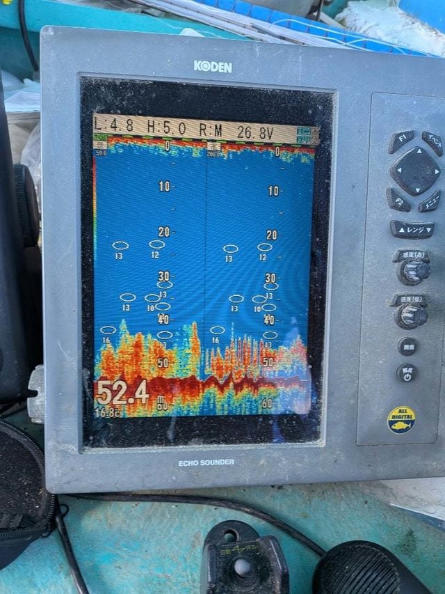 (ブリ)午前は更に冷たい潮があったり、、イワシ派抜けちゃってて大苦戦。 少しでも水温あるところをひたすら探って…。 サンパク、ワラサらしき反応も少し出ますが、、ようやくヒット!サンパク! 苦労した1匹!! ウネリもあってやりにくい中頑張っていただきありがとうございました。 お昼からも同じようなところを探りなかなかあたらず、場所を変えると鳥が出ていてイワシ反応出てきました。 夕方になり反応も大きくまとまりだしてジグで釣れそうな雰囲気。 水温も16℃台の潮が詰めてきて条件良くなってきました。 夕マヅメのチャンスを期待ましたが…残念。