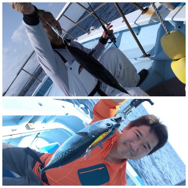 (ブリ)ヒラマサ マダイ 朝から鳥が騒がしくあっちこっち賑やかでした。固まって跳ね出しもあり! キャスティングに出て来ても乗らない、乗らないの繰り返し。 リーダーは釣行毎に縛り変えましょう。細糸は特に。 ヒット!デカい!根にスタックしてしまいました。 ヒット!これは大きそうでしたがフックオフ。 今度はキャッチ! ヒットヒット! ドラグが出てく出てく・・・ヒラマサバンバン跳ねまくり! 連発!サンパク、ワラサも一面跳ねだし。 ジギングでもヒット!キャスティングでもヒット! 後半跳ね出し叩きまくりでした。 午前は、ジギングでマダイ!良型でした。 ダイワのシンキングペンシル。ドラフトフリッカーレーザーインパクト。腹パンサンパクでした。 今度はG2でヒラマサ。キャスティングに炸裂!ヒラマサスーパーナブラ!1発目はバレた。すぐ取り返した! 10キロオーバー。 魚見えまくり、跳ねまくりの割に喰わない! そんな中パドルベイトでキャッチ!フックオフもありました。 10キロオーバー!もっとデカいの見えるけど。小さいのも混じってる。デカいのは根に行っちゃった。 初10キロオーバー!まだまだチャンスあります。 沖に鳥が出たので見に行くとサンパクガボガボやってました。 イワシ追いかけて凄いことに。 ジギングでも喰う。 名手は釣る! キャスティングでも釣る! イワシにはオズマ。 時間になっちゃいました。 朝から鳥が騒がしくて忙しくて楽しかったです。