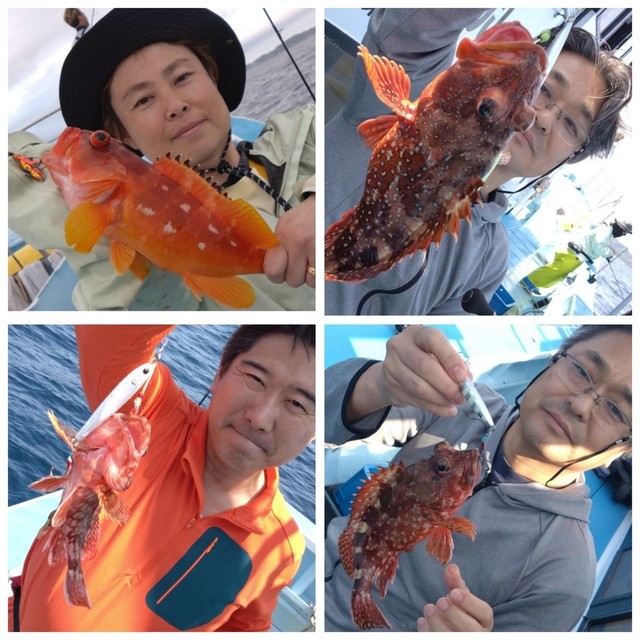 (ブリ)マダイ 0.40~2.50kg 1~5匹 ハタ カサゴ ヒラマサ 午前マダイ船。マダイ絶好調。 1キロクラス、中鯛、大鯛連発。 中鯛、大鯛10枚喰わせ大鯛クラス4枚バラし切れたり外れたり残念でした、中鯛6枚はキャッチ出来ました、水温も21.5度まで上昇し流れも2ノット前後あるので明日も楽しみ