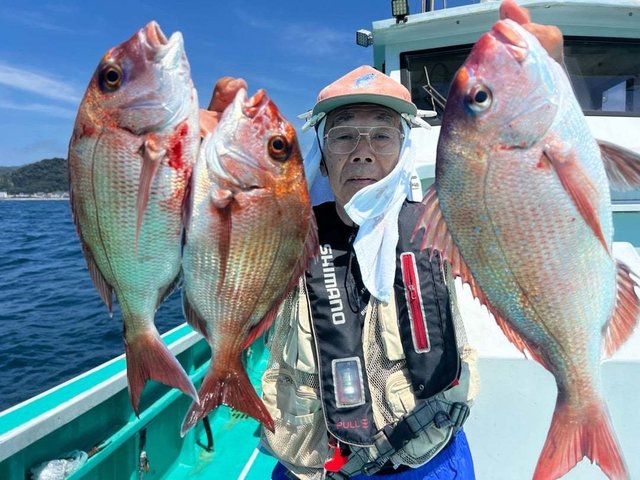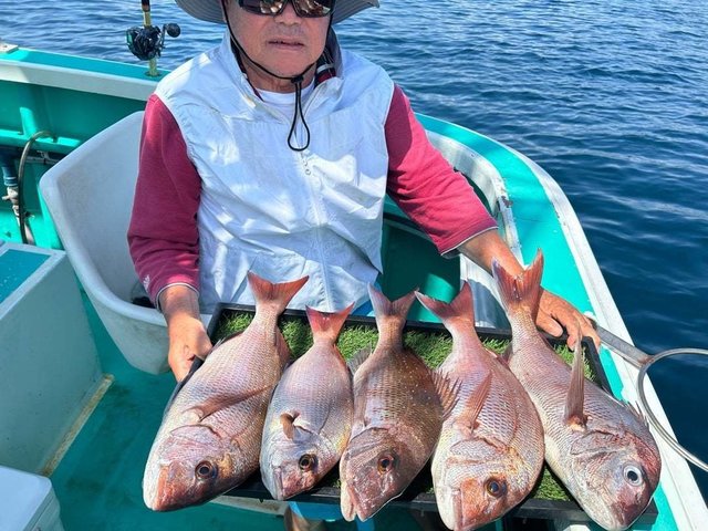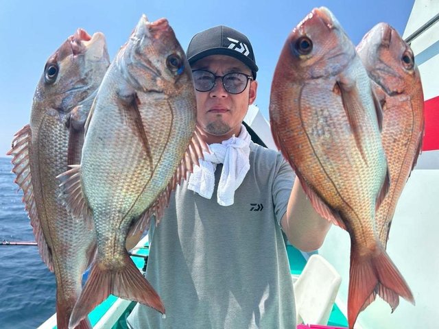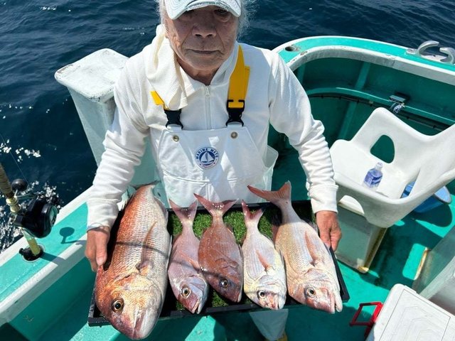 最大8.00kg マダイ 0.40~1.40kg 3~8匹 ハタ ヤガラ 午前マダイ船。マダイ、ヒラマサ、ハタ、ヤガラなどが釣れました。
