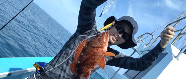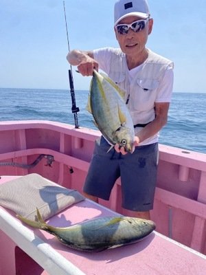 今日もシマアジ、マダイ船。 朝はちょこっとシマアジ狙い。 残念ながら。 その後はマダイをメインに展開。 マダイはちょっとサイズが物足りない感じも ポツポツとトップは5枚まで。 ハリス切れ3回。 ゲストに3.5㌔のヒラマサ。