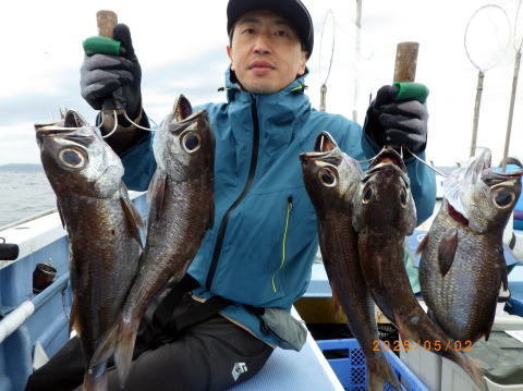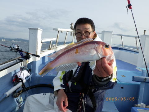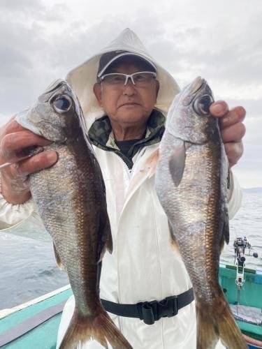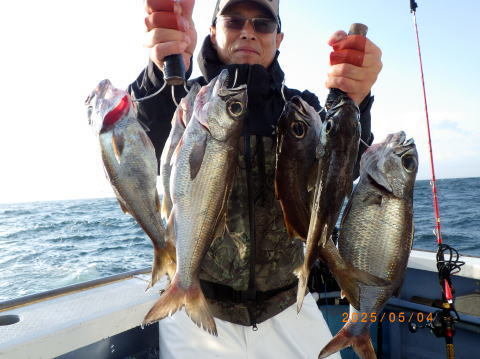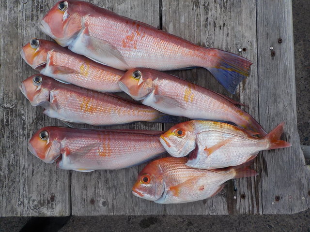 (アカアマダイ)40~42cm 0~1匹 マダイ 0.40~1.70kg 0~1匹 今日は、アマダイ五目釣りで出船しました。 朝から潮が流れず非常に苦戦しました。どうにか本命のアマダイの顔を見ることはできましたが、多くは釣れませんでした。また、キダイもポツリポツリと釣れた方もいましたが小型サイズが多かったですね。アマダイとキダイの他にはマダイ・ハナダイ・カイワリ・ホウボウ・キントキ・ショゴなどが交じりました。