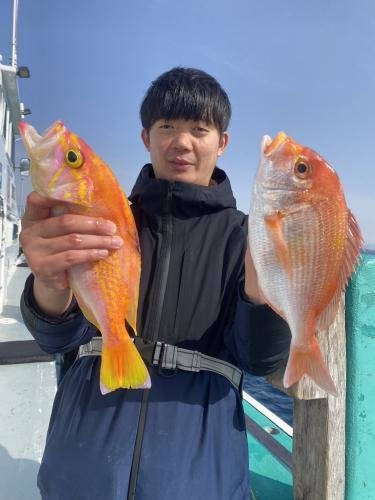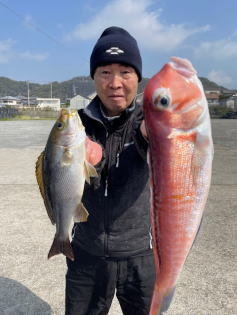 サバ アジ アマダイ カイワリ ハナダイ キダイ 今日も朝一はフラッシャーサビキ黒むつ五目へ。黒むつはポツリポツリと!沖のポイントは潮が激流でしたが、皆さんにご協力いただき何とか! 黒むつは小型混じりでしたが最後に5点掛けなどあり、トップ18匹。2番手15匹。次いで10匹。他にアジ、サバ、他の魚などで何とかお土産になった方も! 後半はご希望でアマダイ五目へ。潮の流れが速く、潮型悪くポイント限定されてしまいましたが、良型アマダイ、良型ハナダイ、良型カイワリ、キダイなど。 本日はご乗船ありがとうございました。またよろしくお願いします。 明日11/27木曜日午前船はスルメイカ専門船または軽くフラッシャーサビキ黒むつ〜スルメイカリレーでまだガーラガラガラです。3時半集合。 午後船ファミリーフィッシングは出船確定。10:30までに集合ガラガラです。 ご予約、お問い合わせお待ちしてマース! ほな、ばいなら〜。