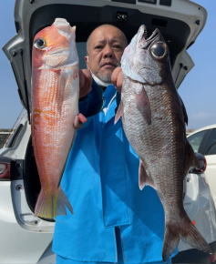スミヤキ メダイ サバ イサキ 最大40cm マダイ ウマヅラハギ 黒ムツ・五目、 今日も食べきれないほどのお魚さん黒ムツから入って、良型で皆さん釣っています。美味しいお魚もしっかりお土産(^^)v他スミヤキ・メダイ・さば。 後半のコマセ五目は、良型イサキ入れ食いで、毎日のように出ています。定置網ポイント安定していますのでお早目の釣行おすすめ致します。他マダイ・ウマヅラハギ等、いつもの爆釣感はありませんでしたが高級魚ばかりです。明日は予報次第です。