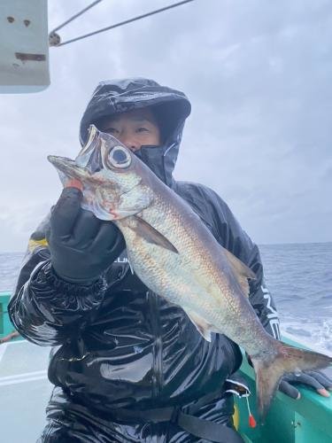 竿頭12匹 ハチビキ 最大3.00kg メダイ サバ フラッシャーサビキ五目のクロムツ~アマダイ五目のリレーへ出船。 Fサビキ五目は、本日も良型クロムツ主体にポツポツと食い出し、良い感じでした。トップ12匹5・6匹平均でしたが型が良いので満足です。途中から端物でもまわったのかパタリと食わなく、なってしまい良い外道へ。こちらも反応バリバリでしたが、潮の流れが速く、1流し1回でしたが流すたびに釣れましたが、忙しい釣りになってしまい、多点掛けで釣果に差が。釣った方は楽勝の規定数達成。他に大型ハチビキ1~3キロ級。メダイ・サバ交じって好調でした。反応はバリバリなので、潮具合次第でジャンジャンバリバリになると思います。 後半のアマダイ五目は、沖よりも潮の流れ速く苦戦。底立ちとれない状態で、外道のみでした。
