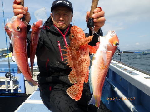 4~7匹 メダイ 1~5匹 オニカサゴ 合計1匹 オキカサゴ サバ 黒ムツ~鬼カサゴ出船⇒前半潮の流れ良く良型が釣れた(^_-)-☆