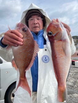 クロムツ オアカムロ アジ サバ アマダイ キダイ アヤメカサゴ フラッシャーサビキ五目~アマダイ五目のリレーへ出船。 Fサビキ五目は、クロムツは良型主体に小型・大型交じって、開始早々は入れ食い。その後もポツポツと多点掛けもあっても数伸びた。良い外道は、型交じりでしたが良型のみ拾ってお土産バッチリ!他に美味しいオアカムロアジたくさん、メダイ、アジ、サバ交じで好調でした。 後半のアマダイ五目は、中小型アマダイ・キダイ・アヤメカサゴなど。 本日は雨の中ありがとうございました。