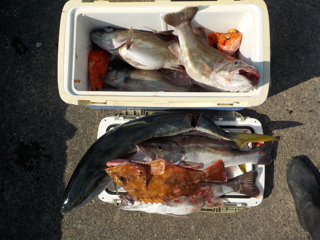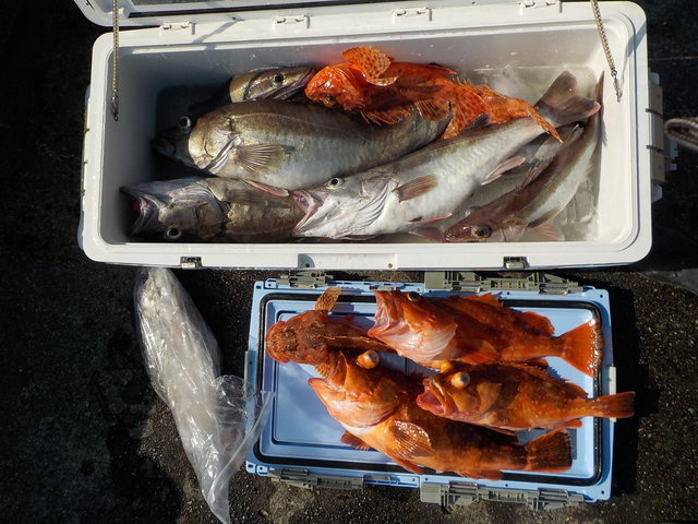 竿頭4匹 クロムツ アジ サバ ウッカリカサゴ アラ 今日も朝一はフラッシャーサビキ黒むつ五目へ。黒むつは反応良くなってきましたが、食いはポツーリポツーリ!良型混じりでトップ8匹。2番手7匹。他にアジ、サバ、他の魚多数で何とかお土産に!昨日よりだんだん上り調子に良くなってきてますね! 後半の鬼カサゴは今日も何度かモグモグタイムあり、盛り上がりました。トップはキープサイズで4匹。2番手3匹が2名様、次いで2匹が数名様。他に良型ウッカリカサゴ、コアラなど。 本日はご乗船ありがとうございました。またよろしくお願いします。 明日2/14土曜日午前船は軽くフラッシャーサビキ五目〜サバイカで空きあります。3:45までに集合。 午後船ルアーは出船確定。11:15までに集合。ガラガラです。 ご予約、お問い合わせお待ちしてマース! ほな、ばいなら〜。