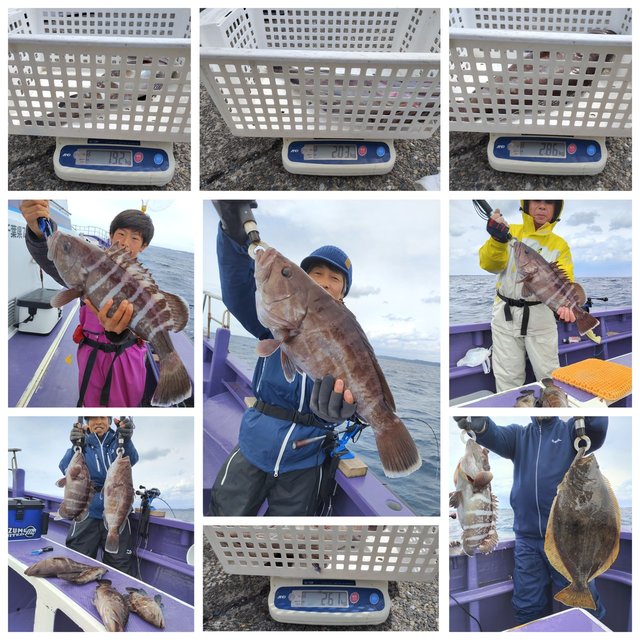 1.30~2.00kg 0~2匹 マハタ 0.50~2.80kg 0~6匹 ☆午前ヒラメ・マハタ釣り釣果報告です☆ 太東沖→25~50m。 マハタ→0.5~2.86㎏、0~6匹。 ヒラメ→1.2~2㎏、0~2枚。 ゲスト→カサゴ(多数)・メバル(数)混じる。 本日は久々に太東沖(40m前後)から開始です! 開始から良いとこ入り同時ヒットや連チャンヒットあり流れ良くアタリ続き好スタート☆その後は流れも落ち着いてきたらバラし多くハリス切れも数回ありでしたが、マハタ優先でヒラメも良型getでサイズupの方もいて、ポイント転々としゲストにカサゴやメバルも良く混じって殆どの方達が、お魚複数匹ずつgetしてくれ、お土産になりました!ヒラメとマハタは、いっぱいイワシ吐き出してました(笑)どちらも良型getでき良いサイズ数混じって、好調でした☆明日は定休日です。来週も期待です!明後日8日(火)は出船確定出来てますが2名様と空き多数(ガラガラ泣)、大募集中ですので、皆様宜しくお願い致しますm(__)m ☆4月~ゴールデンウィークの釣りモノ☆ *午前ヒラメ釣り、2名様から出船確定!状況(ナギなら)で沖へ!4月から集合時間3時50分、船集合です。 *午後マダイ釣り、3名様から出船確定! 昨日ヒラメ・マハタ共に最大3㎏オーバーgetできましたので、今後も期待大! ☆今後の予定です☆ ○明日4月7日と21日は、定休日です。 ○明後日4月8日(火)、 午前ヒラメ・マハタ釣り出船確定、2名様、大募集中! ○4月9日(水)、 午前ヒラメ・マハタ釣り出船確定、2名様、大募集中! ○その他の日(今月)も、出船確定出来て無い日ばかりです(泣)どの日もチャレンジャー大募集中ですので皆様宜しくお願い致します❗早めの御予約助かりマスm(__)m ○4月10日(木)、 午前ヒラメ・マハタ釣り出船予定、0名様、大募集中! ○4月11日(金)も、 午前ヒラメ・マハタ釣り出船予定、0名様、大募集中! ○4月12日~13日(土~日)も、午前ヒラメ・マハタ釣りで、ご予約受付中ですm(__)m ○御予約は、随時受付中ですので、皆様宜しくお願い致しますm(__)mお待ちしてます!