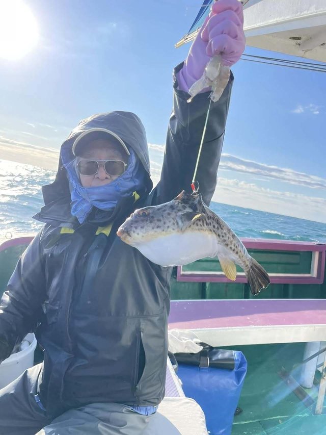 竿頭3匹 ウマズラ ショウサイフグ 午前赤目フグ出船。 朝のうちは当たり無くポイント移動。 移動してからポツリポツリ上がりました。
