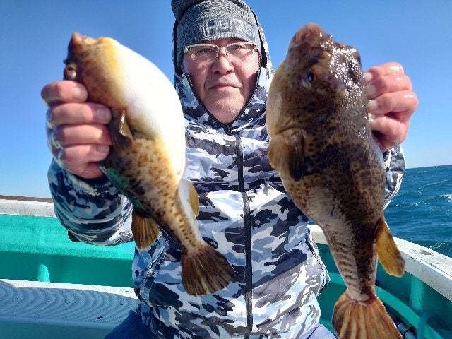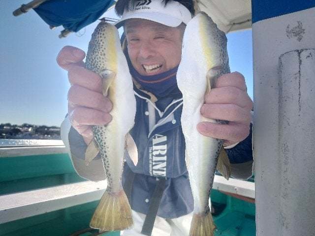 最大2.00kg 竿頭8匹 トラフグ 最大2.00kg アカメフグもまずまずの釣果で良型交じり。 残念ながら0は1名様でした。