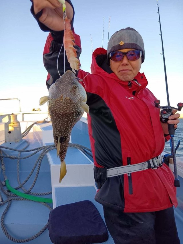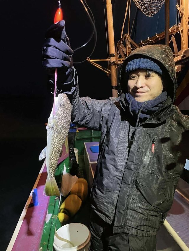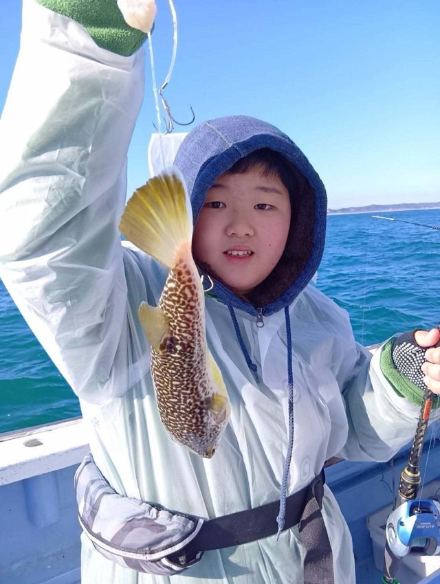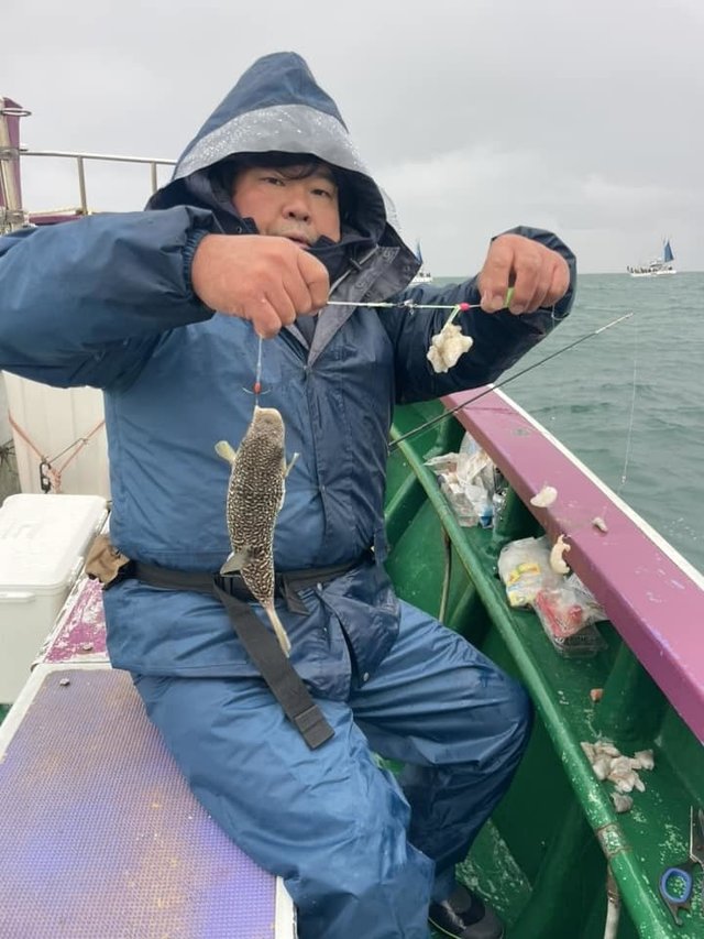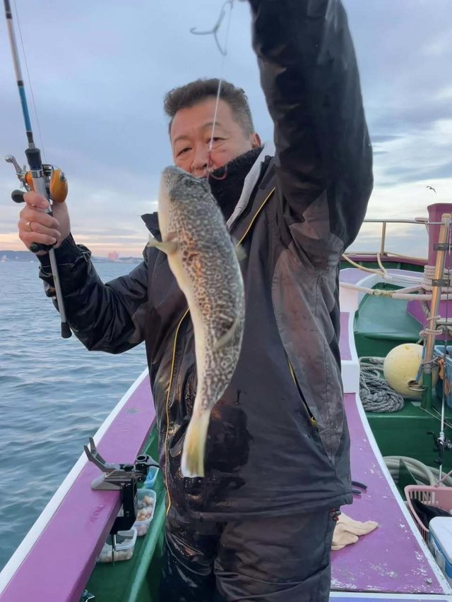 25~40cm 2~15匹 トラフグ 太東沖25mから開始して、ウネリと寒い雨の中、余り動けないので、少しずつ潮回りしていき、釣れれば良型フグなので、型出た場所を攻めていきました。時々、サバフグに邪魔されますが、ショウサイも、当たりますので、我慢しながら、ショウサイを貯めていく感じでした。 スペシャルゲストのトラフグも、本日も、お顔だしてくれて有り難いです。 寒く船酔い居ましたが、釣果的には、海の状況の割には、伸びました。 明日も、釣れると願い、出船しますので、御予約お待ちしています。 乗り合い、仕立て船出船中連日沢山空き有りますので、遊びに来て下さい。 爆釣り願い、明日からの嬉しい御予約お待ちしています。 4時00分、船灯り付けます。付近で、待機してください。 10月は、4時00分集合、4時20分出船です。 11月01日、02日、沖釣りイベント開催、フグ釣り、受付中。 いすみ市特産物、抽選で、景品多数有り、沢山空き有ります。