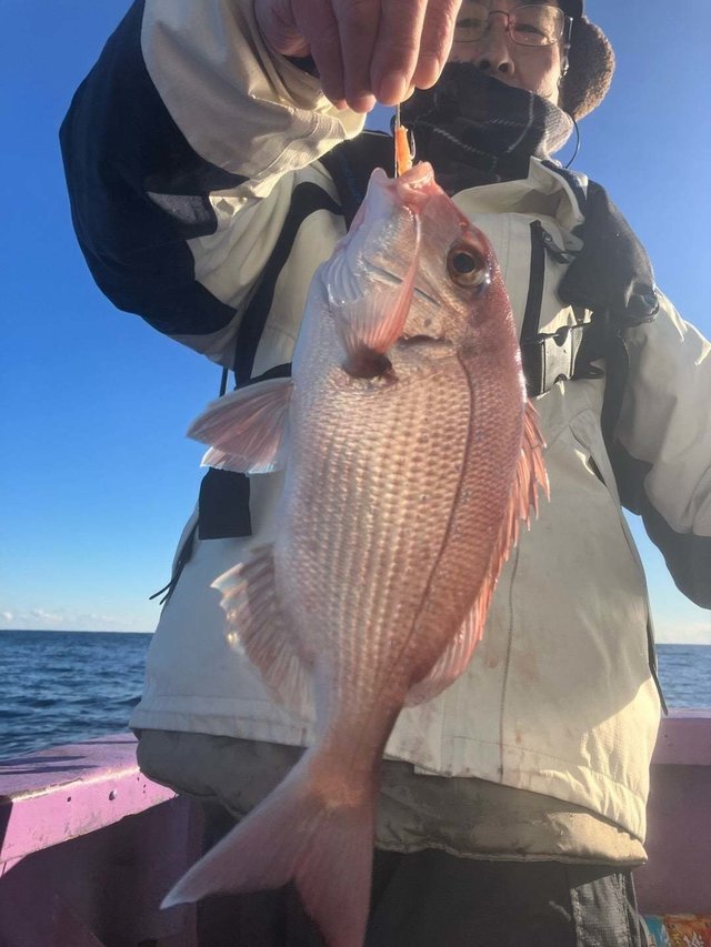 (ショウサイフグ)マダイ 0.30~0.70kg 0~10匹 マハタ イシガキダイ カサゴ イサキ ウマズラハギ ガンゾウヒラメ 午前船。 真鯛船は水深8〜35m。 ポイント移動後、アタリ良くなり好調に釣れました。澄み。