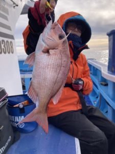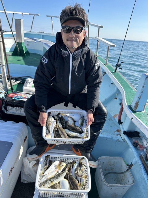 (ショウサイフグ)マダイ 0.30~1.00kg 4~10匹 ハナダイ カサゴ ガンゾウ イサキ 午前マダイ船。