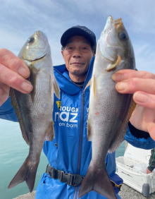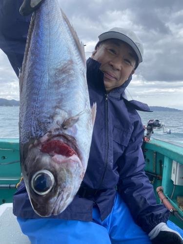 (マアジ)クロムツ オアカムロ サバ ハチビキ メダイ 今日も朝一はフラッシャーサビキ黒むつ五目へ。潮型悪く釣りずらかったですが、皆さんにご協力いただき、何とかなりました。黒むつはほとんど単発でしたが、反応多くポツリポツリと。 黒むつは良型多く混じり、6匹(貸し竿使用の初挑戦者です。お見事です!)〜トップ20匹オーバーが2名様。次いで17匹、16匹、15匹が2名様・・・・・・とほとんど皆さんツヌケ。他にアジ、良型メダイ、良型ハチビキ、美味しいオアカムロアジ、良型サバ多数、他の魚などで今日も魚種多彩にお土産グーバッチに!(^。^)! 後半の根魚五目は短時間になってしまいましたが、鬼カサゴ、ウッカリカサゴ、コアラ、ユメカサゴなど。 本日はご乗船ありがとうございました。またよろしくお願いします。 午後船はファミリーフィッシングへ。 ほな。