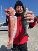 (マアジ)マダイ 0.30~1.00kg 1~15匹 カサゴ フグ 午前マダイ船。浅場で好調。 良型マダイ混じりながらトップ15枚になり二桁以上が5名になりました。