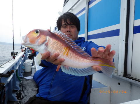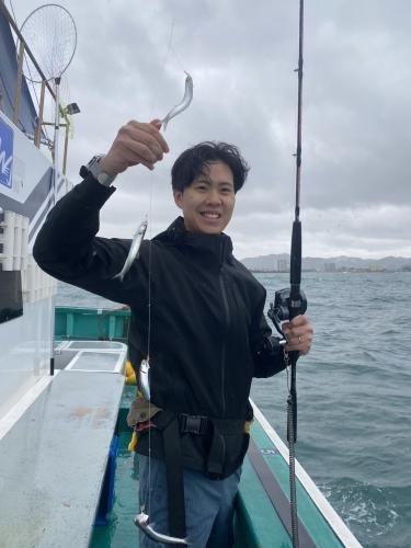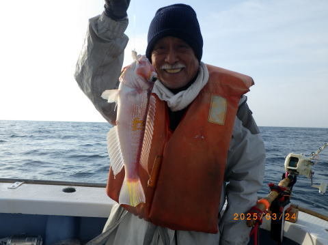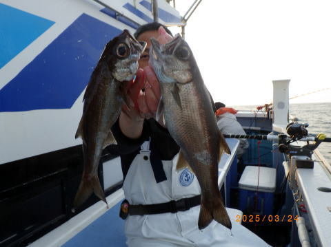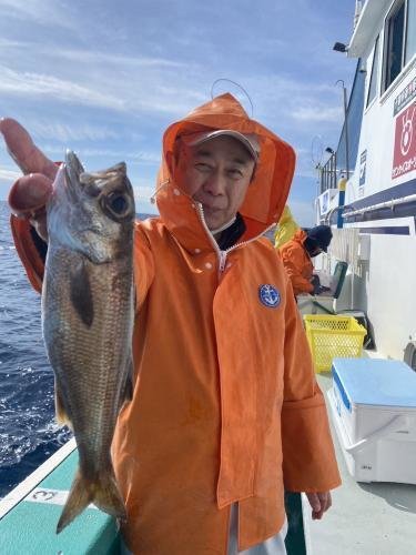 (マアジ)クロムツ メダイ サバ マダイ 0~2匹 カンパチ イサキ 黒ムツは最初からポツ~リポツ~リちょっと差が出ました。他美味しいお魚も多点掛けで入れ食い!全員楽しめたようです(#^.^#)他メダイ・アジ・さば。 後半は余裕でマダイ狙い!0.4~1.2kg程度、0~2匹。他カンパチ・イサキお土産。