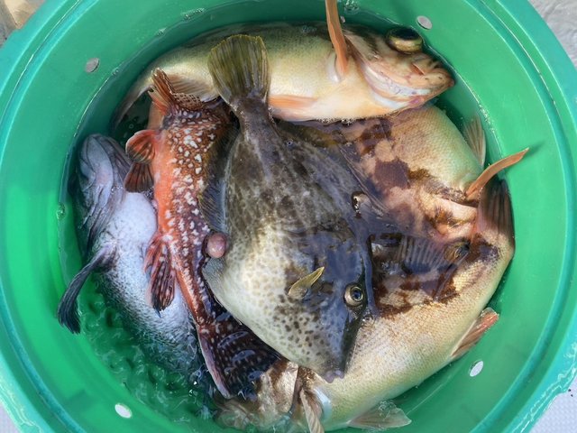ハナダイ 20~37cm 20~38匹 マハタ カサゴ ウマヅラ サバ 今日もLTハナダイで出船しました、 昨日よりも水温が1℃近く上がり反応も十分でしたが、 アタリは有るが食い込みが悪く合わせても掛からない、 ウマヅラやフグなどのコツコツつついて食べる系の魚。 だけどたまに釣れてくるのはハナダイなんだよね、 サイズもマズマズなんだけどアタリの半分位しか掛からない、 後半になってアタリの大半が掛かる様になってきた、 まぁ終わってみれば十分な釣果には成っていました。