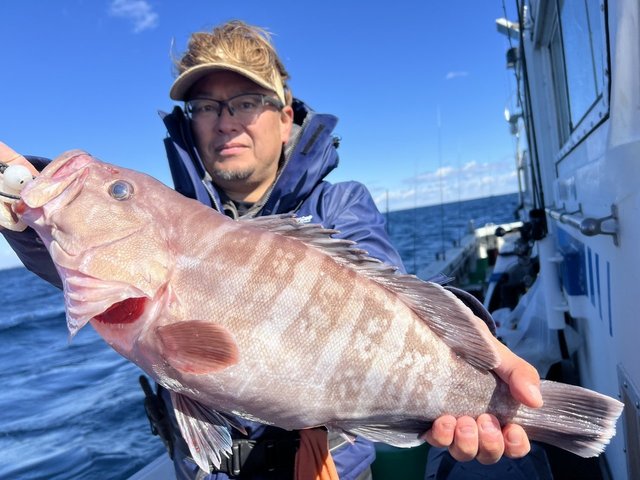 今日は良い反応があるものの、すっぽ抜けや多点がけが少なく数はのびませんでしたが、良型ハナダイやゲスト混じりでお土産になりました。水深:30m。