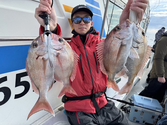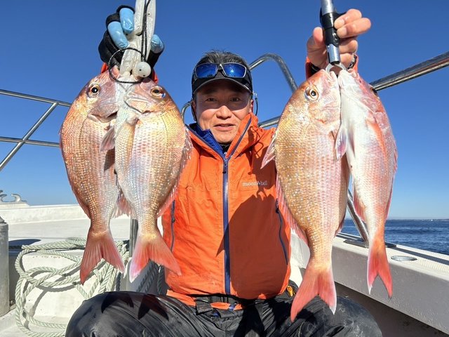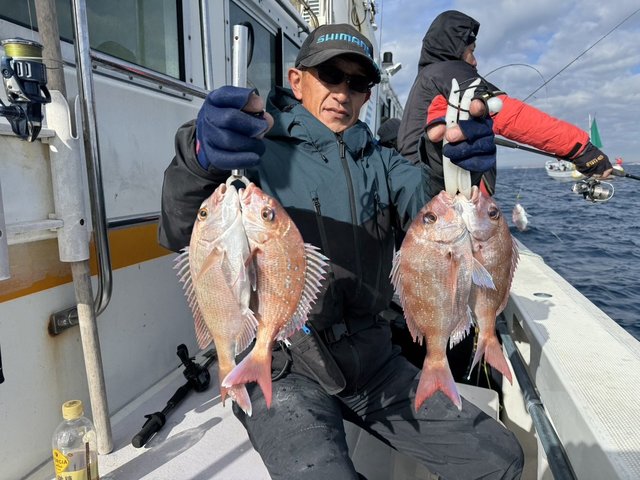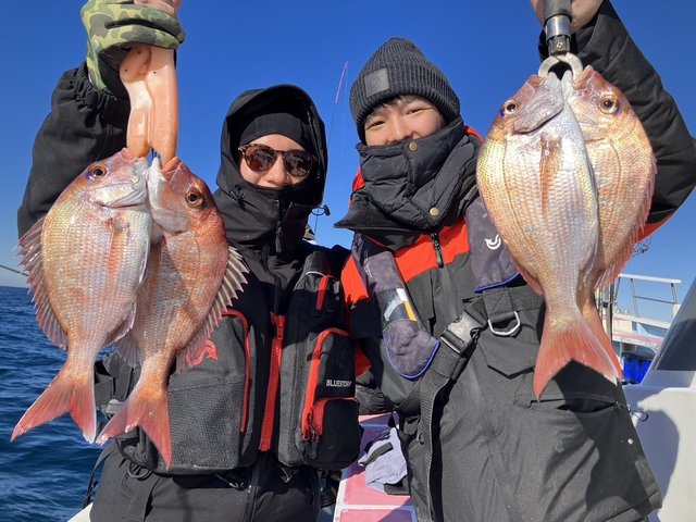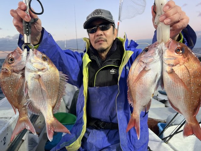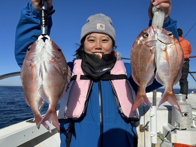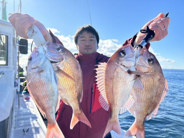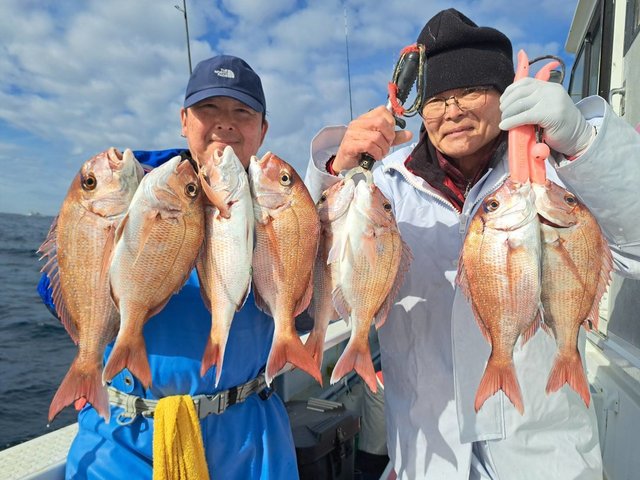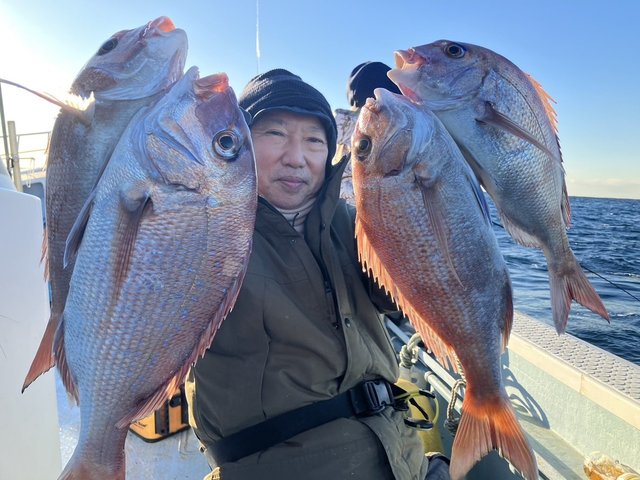 0.40~1.00kg 1~21匹 マダイ 0.30~1.40kg 0~19匹 ★★★活き海老エサでの一つテンヤマダイ釣り♪★★★ 活きエビエサは、こちらで準備しております。 エサの追加料金は頂いておりません。 (準備できない場合は冷凍エビとなります。) テンヤはご用意をお願い致します。 <午後マダイ船1> 一つテンヤでのマダイ釣りです。午後からも真鯛の活性良くTOP21匹。2番手16匹、次15匹、12匹とオデコ無く好調!!午前同様平均サイズも良かったです。明日また頑張ります。 外道:ハナダイ、カサゴ、イシダイ、カワハギ。 <午後マダイ船2> 一つテンヤでのマダイ釣りです。良型サイズがチラホラ混じりながらの上がりで、TOP19匹、次いで16匹、15匹。かなりバラしが目立つ釣行で難しそうでしたが、上手く掛けている方もおり、外道と併せてお土産になりました。 外道:ハナダイ、カサゴ、ウマヅラ、カワハギ、イシダイ。 ***キャビン内、店内はマスクの持参着用をご協力お願い致します*** <今後の予定>***集合時間まえにはお越しください。 午前船:4時30分船宿集合…マダイ船、ヒラメ船。 午後船:10時30分船宿集合…マダイ船。 定休日:第2火曜日(1/14) (*状況により予定が変わることもございます。前日に確認のお電話をお願い致します。) <ご予約・お問い合わせはこちらへ> 090-2155-0500(午前9:00~午後8:00まで) キャンセルにより他のお客様へご迷惑をおかけしてしまう事もありますので、キャンセルの無いようご予約をお願い致します。 <乗船名簿について> ①お名前(フルネーム)、②住所、③緊急連絡先の電話番号、④年齢、⑤性別 ①~⑤まで記入し可能であれば、持参お願い致します。