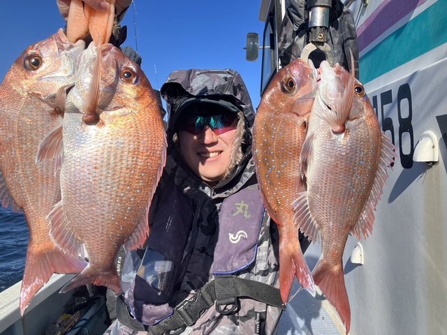 0.40~1.60kg 3~22匹 マダイ 0.30~3.40kg 0~13匹 ★★★活き海老エサでの一つテンヤマダイ釣り♪★★★ 活きエビエサは、こちらで準備しております。 エサの追加料金は頂いておりません。 (準備できない場合は冷凍エビとなります。) テンヤはご用意をお願い致します。 <午後マダイ船1> 一つテンヤでのマダイ釣りです。1.6キロ、1.5キロの中鯛上がる午後からも真鯛の活性良くTOP22匹、2番手21匹、次16匹とオデコ無く好調!!午前同様平均サイズも良く皆さんお土産に!!明日また頑張ります 外道:ハナダイ、カサゴ、イシダイ、カワハギ、オオニベ。 <午後マダイ船2> 一つテンヤでのマダイ釣りです。大鯛ゲット!型は見られるものの午前と違い素直に反応でアタリが出ない感じで伸び悩む中、サプライズビッグヒット!無事仕留めてくださり3.4kgの大鯛浮上し良かったです。 外道:ハナダイ、カサゴ、ウマヅラ、マハタ、カワハギ、イシダイ、クエ。 ***キャビン内、店内はマスクの持参着用をご協力お願い致します*** <今後の予定>***集合時間まえにはお越しください。 午前船:4時30分船宿集合…マダイ船、ヒラメ船。 午後船:10時30分船宿集合…マダイ船。 定休日:第2火曜日(1/14) (*状況により予定が変わることもございます。前日に確認のお電話をお願い致します。) <ご予約・お問い合わせはこちらへ> 090-2155-0500(午前9:00~午後8:00まで) キャンセルにより他のお客様へご迷惑をおかけしてしまう事もありますので、キャンセルの無いようご予約をお願い致します。 <乗船名簿について> ①お名前(フルネーム)、②住所、③緊急連絡先の電話番号、④年齢、⑤性別 ①~⑤まで記入し可能であれば、持参お願い致します。