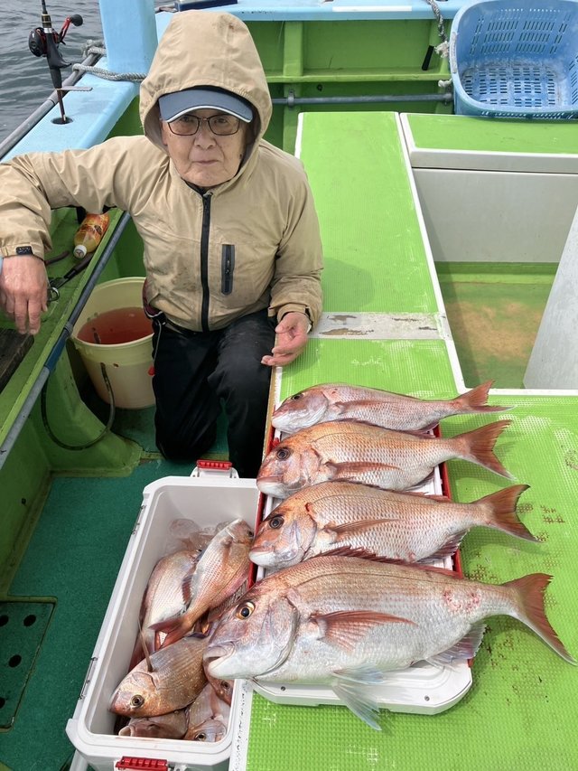 0.30~0.80kg 6~17匹 ★★★活きエビでの一つテンヤマダイ釣り♪★★★ (活き海老エサが準備できない場合は冷凍海老での釣行になります。) エサは、こちらで準備しております。 エサの追加料金は頂いておりません。 <マダイ船> 一つテンヤでのマダイ釣りです。TOP17匹が2名。2番手13匹が5名とオデコ無く好調!!本日もお土産十分でした。明日も頑張ります。 外道:ハナダイ、カサゴ、カワハギ、カンパチ、イシダイ。 ***キャビン内、店内はマスクの持参着用をご協力お願い致します*** <今後の予定>***集合時間まえにはお越しください。 午前船:4時15分船宿集合…マダイ船。(12月からは4:30集合) 午後船:10時30分船宿集合…マダイ船。 定休日:第2火曜日(12/9) (土、日、祝日は、貸竿のお客様、貸竿の必要なグループ様は5分前集合でお願い致します。) (*状況により予定が変わることもございます。前日に確認のお電話をお願い致します。) <ご予約・お問い合わせはこちらへ> 090-2155-0500(午前9:00~午後8:00まで) キャンセルにより他のお客様へご迷惑をおかけしてしまう事もありますので、キャンセルの無いようご予約をお願い致します。 <乗船名簿について> ①お名前(フルネーム)、②住所、③緊急連絡先の電話番号、④年齢、⑤性別 ①~⑤まで記入し可能であれば、持参お願い致します。