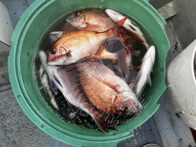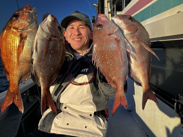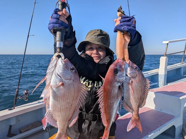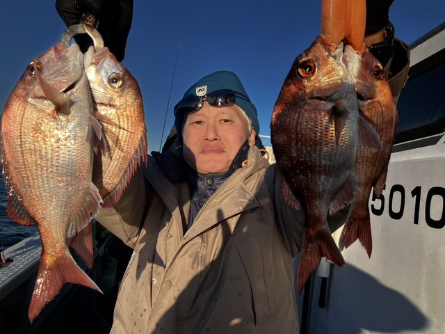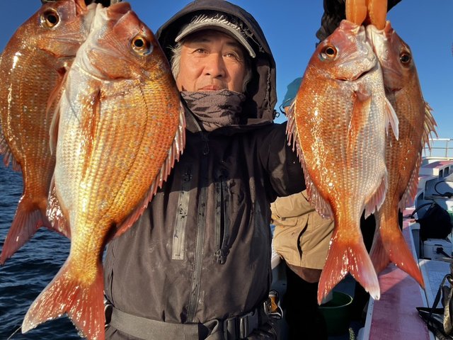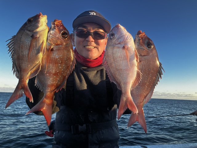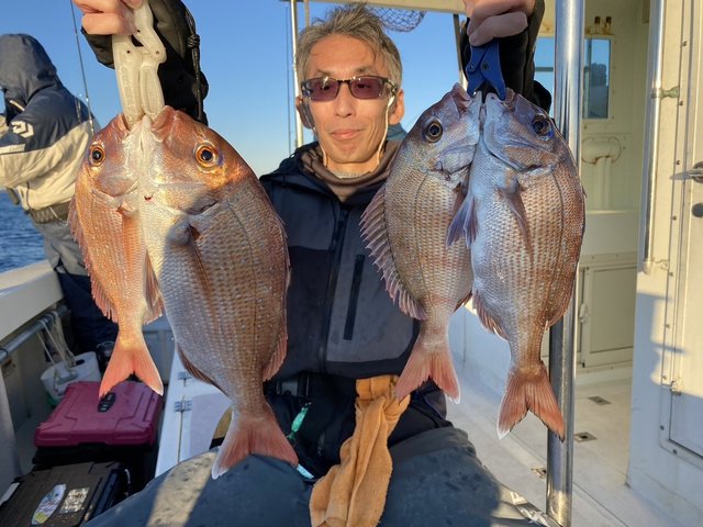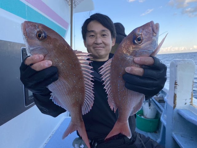 0.30~1.60kg 5~20匹 マダイ 0.30~1.50kg 0~10匹 ★★★活きエビでの一つテンヤマダイ釣り♪★★★ (活き海老エサが準備できない場合は冷凍海老での釣行になります。) エサは、こちらで準備しております。 エサの追加料金は頂いておりません。 <午後マダイ船1> 一つテンヤでのマダイ釣りです。本日も午後からは活性上がりTOP20匹。2番手18匹、次15匹スソでも5匹と好調!!小ぶりな物も交じったが食べ頃サイズの真鯛も多数上がり良かったです。明日また頑張ります。 外道:ハナダイ、カサゴ、カワハギ、オオニベ、マハタ。 <午後マダイ船2> 一つテンヤでのマダイ釣りです。最近見ていなかったポイントから探ってみましたが、型程度で中々伸びず。道中で1.5kgサイズや美味しい外道が混じってくれて良かったです。 外道:ハナダイ、カサゴ、ウマヅラ、カワハギ、マハタ、メバル。 ***キャビン内、店内はマスクの持参着用をご協力お願い致します*** <今後の予定>***集合時間まえにはお越しください。 午前船:4時30分船宿集合…マダイ船。 午後船:10時30分船宿集合…マダイ船。 定休日:第2火曜日(1/13) (土、日、祝日は、貸竿のお客様、貸竿の必要なグループ様は5分前集合でお願い致します。) (*状況により予定が変わることもございます。前日に確認のお電話をお願い致します。) <ご予約・お問い合わせはこちらへ> 090-2155-0500(午前9:00~午後8:00まで) キャンセルにより他のお客様へご迷惑をおかけしてしまう事もありますので、キャンセルの無いようご予約をお願い致します。 <乗船名簿について> ①お名前(フルネーム)、②住所、③緊急連絡先の電話番号、④年齢、⑤性別 ①~⑤まで記入し可能であれば、持参お願い致します。